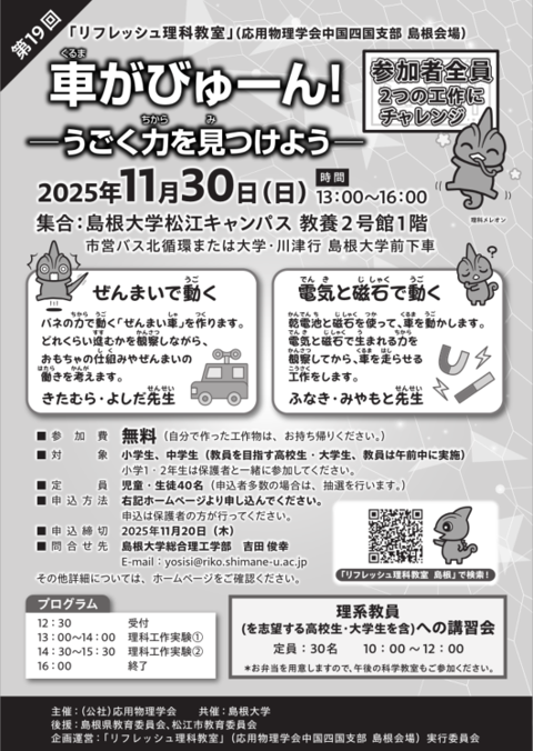 リフレッシュ理科教室(島根会場)は、2025年で19回目。